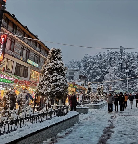 The Mall Road is the beating heart of Manali—a bustling, pedestrian-only boulevard where the town's social and commercial life converges. In winter, it serves as the ultimate winter evening retreat, glowing with golden lights against a snowy backdrop. It is a mix of high-end branded showrooms and traditional Tibetan stalls.